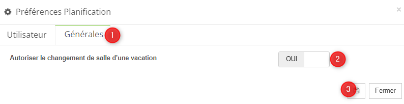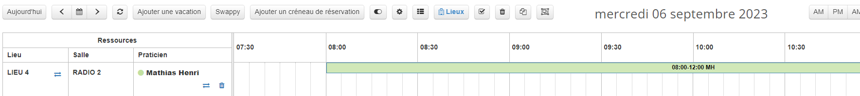 ⚠ NB : seule une vacation praticien peut être déplacée d'une salle à une autre, pas les créneaux de réservation éventuellement associés