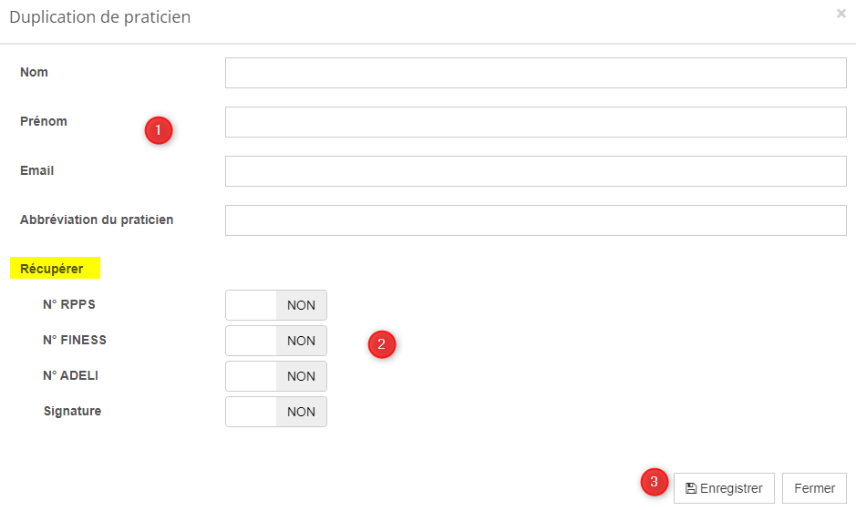 Lors de la duplication d'un praticien, il est désormais possible de récupérer et donc de dupliquer des données supplémentaires