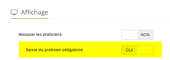- Basculez le bouton sur OUI sur la ligne "Saisie du praticien obligatoire"