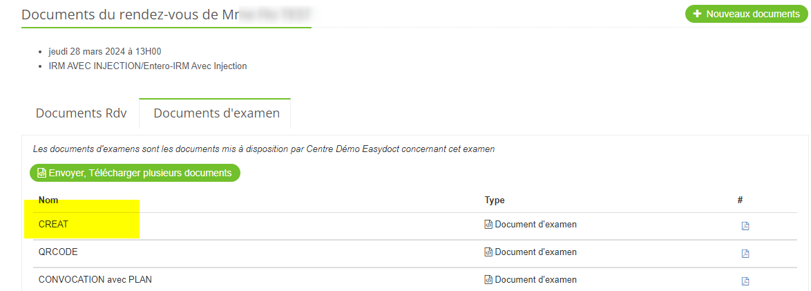 - Ainsi que la production du document de rendez-vous associé à cette alerte, permettant au prescripteur de communiquer ce document au patient (si alerte incluse).