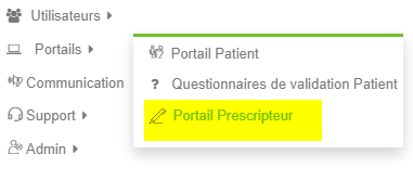 MENU > CONFIGURATION > PORTAILS > Portail Prescripteur