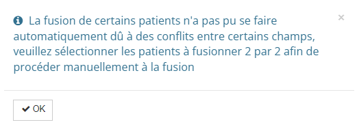 Lors d'une tentative pour fusionner plus de 2 patients, un message vous informe désormais de la nécessité de les fusionner 2 par 2