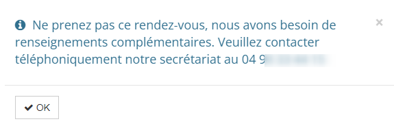 => il peut poursuivre la prise de rendez-vous comme habituellement