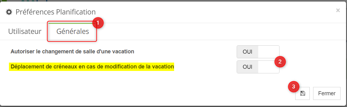 - Dans la fenêtre "Préférences planification" sélectionner l'onglet Générales