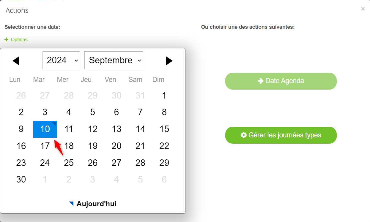 - Cliquez sur la date choisie pour la planification