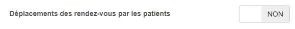 - Sur la ligne "déplacements des rendez-vous par les patients", basculez le bouton sur NON si vous souhaitez que le patient ne puisse pas déplacer seul son rendez-vous