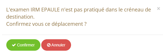 - Pour déplacer le rendez-vous sur le créneau de destination, cliquez sur Confirmer