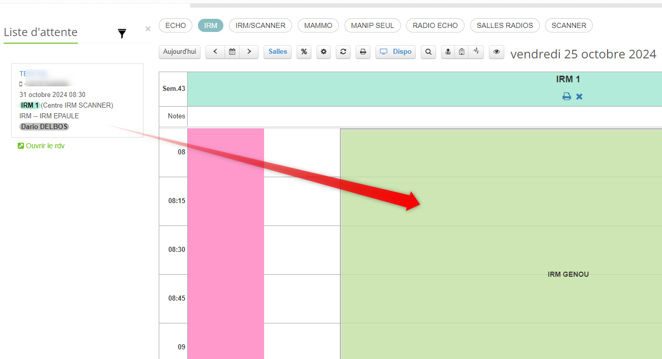 Pouvoir glisser un rendez-vous depuis la liste d'attente sur un créneau dans lequel l'examen n'est pas paramétré