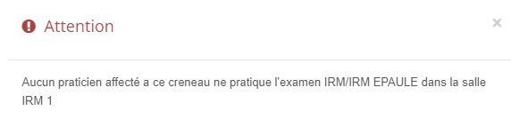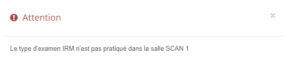 - Lors du glissement d'un rendez-vous depuis la liste d'attente vers un créneau de destination dans lequel l'examen n'est pas paramétré