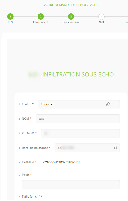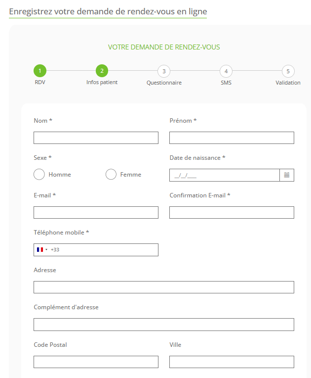 Le patient devra le compléter afin de pouvoir finaliser sa demande de rendez-vous auprès du centre.