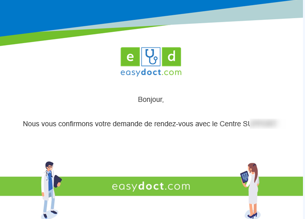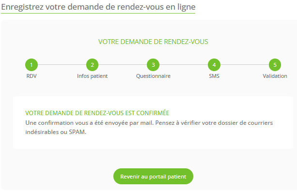 => Il est alors informé du bon enregistrement de sa demande de rendez-vous auprès du centre