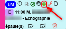 - Lorsqu'un rendez-vous a été pris par Allodoct pour un patient, ce pictogramme est visible sur le rendez-vous :