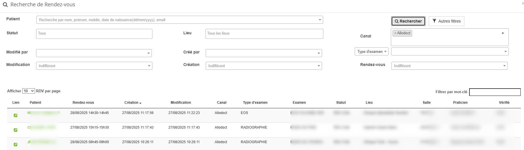 Dans le champ canal sélectionnez "Allodoct" , ajoutez d'autres filtres si besoin, puis cliquez sur le bouton "Rechercher"
