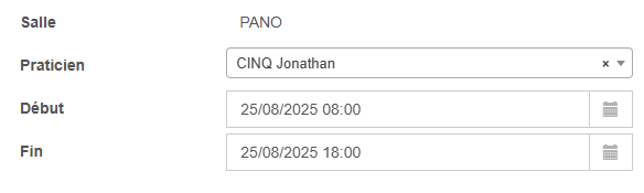 - Le 25 aout, le Dr CINQ est un titulaire planifié dans la salle PANO