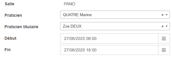 Les champs Praticien = > récupère les informations d'un praticien planifié qu'il soit titulaire ou remplaçant