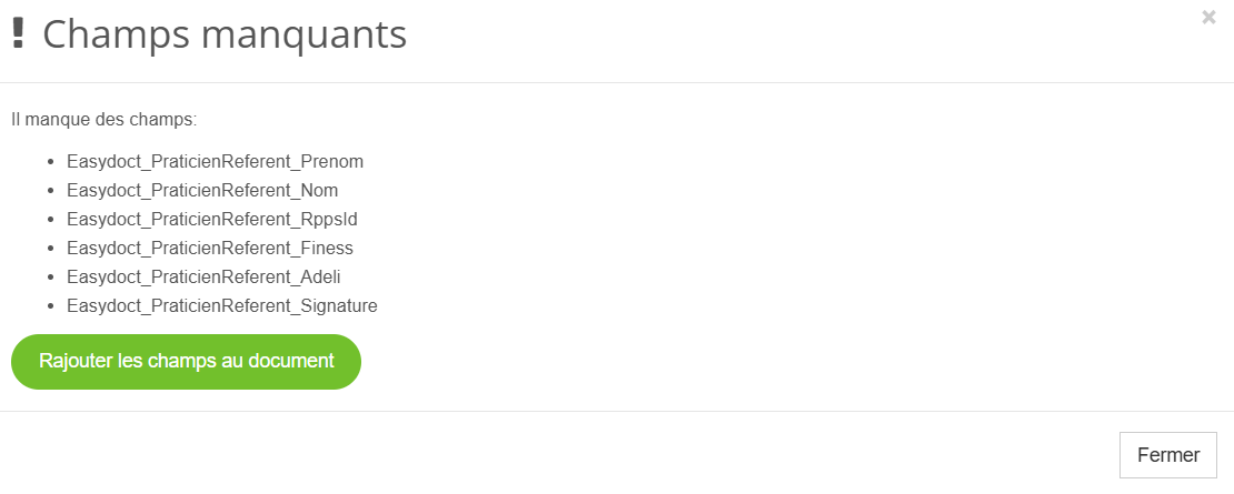 Cliquez sur le bouton vert "Rajouter les champs au document"