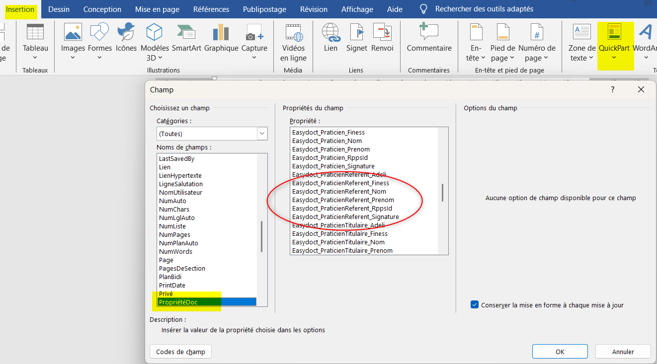 => Votre document est mis à jour avec la possibilité désormais d'y insérer les champs liés au praticien référent
