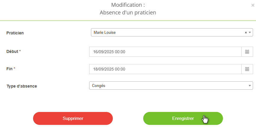 Déplacer, modifier ou supprimer une absence praticien