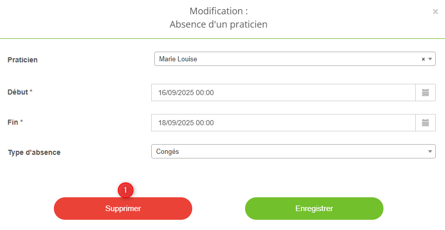 Comment supprimer une absence praticien ?