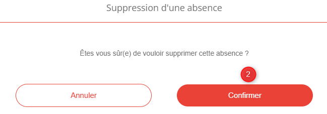 - Cliquez dans la bande colorée de l'absence, puis sur le bouton Supprimer