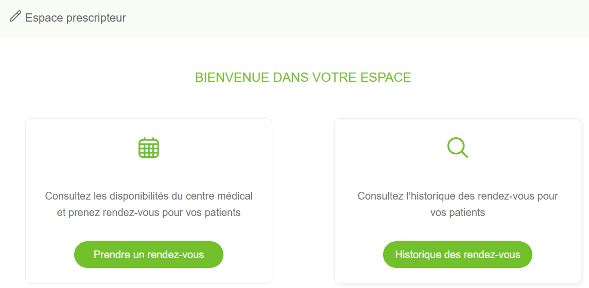 - Sur la page d'accueil, partie droite, cliquez sur le bouton vert Historique des rendez-vous.