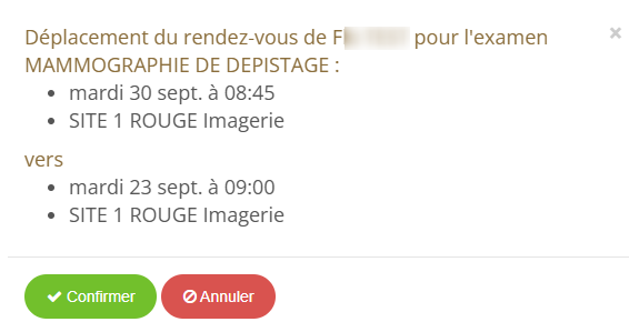 - Choisissez un nouveau créneau de rendez-vous , puis confirmez le déplacement dans la fenêtre suivante