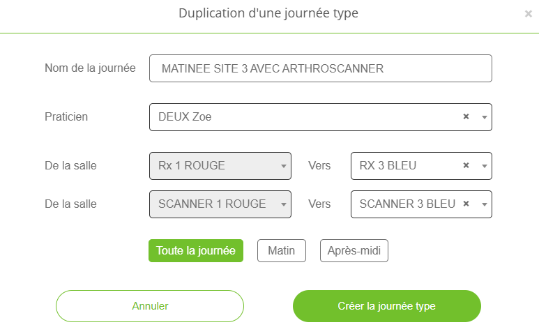 - Indiquer si la duplication doit concerner matin, après midi ou journée entière (journée entière par défaut)