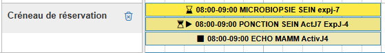 Dans les journées types ou dans la planification, créer une vacation praticien, puis sur la ligne créneau de réservation, ajouter les créneaux les uns sous les autres, avec dans l'ordre :