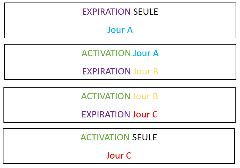 Ils devront chacun s'activer au moment de l'expiration du créneau qui leur est supérieur et devront s'expirer au moment de l'activation du créneau qui leur est inférieur