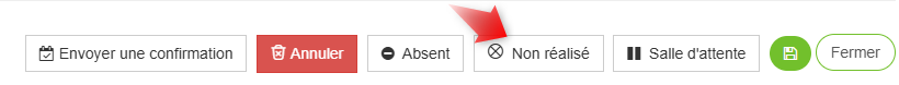 - Puis dans la partie inférieure droite du rendez-vous, cliquer sur le bouton "Non réalisé"
