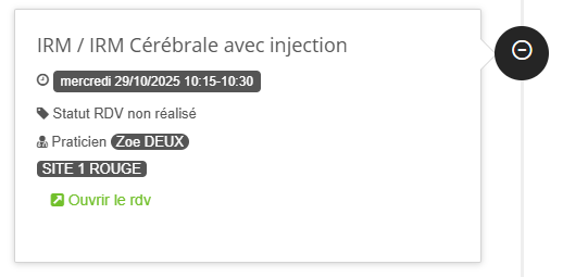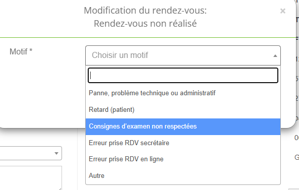 - Cliquer sur le rendez-vous non réalisé pour l'ouvrir