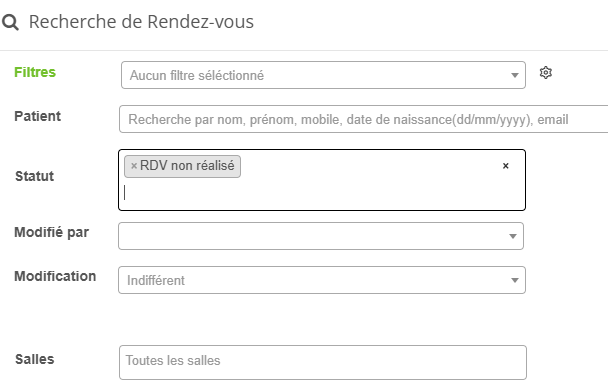 - Dans le champ statut, choisir "Rdv non réalisé"
