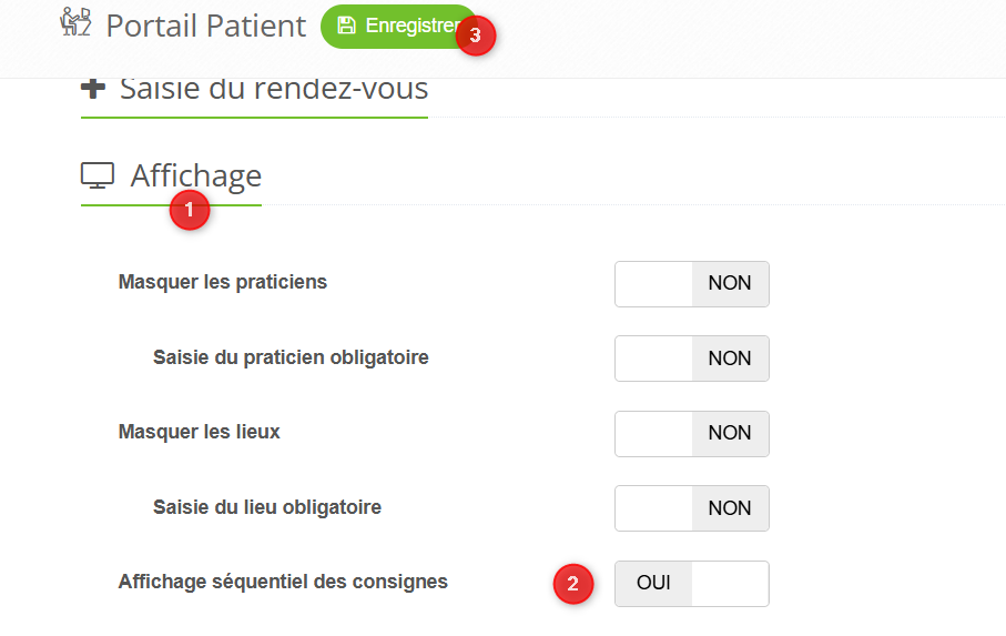 Sur la ligne Affichage séquentiel des consignes, basculez le bouton sur OUI