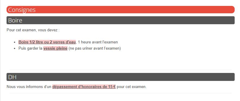 Exemple lors d'une prise de rdv en ligne pour une échographie abdominale :