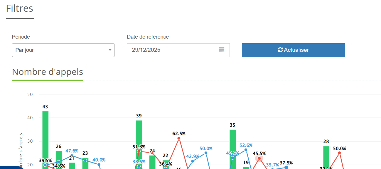 Définition : les statistiques pour Allodoct ont été harmonisées et simplifiées afin de proposer des graphiques avec un choix de scope temporel, et une meilleure analyse de l'efficacité de l'agent conversationnel sur une licence