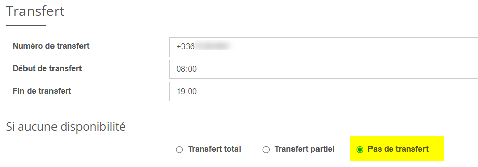 - A la rubrique Transfert puis la sous-rubrique "Si aucune disponiblité"