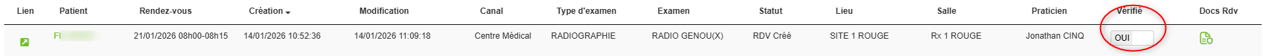 => le rdv est alors coché comme vérifié dans l'agenda