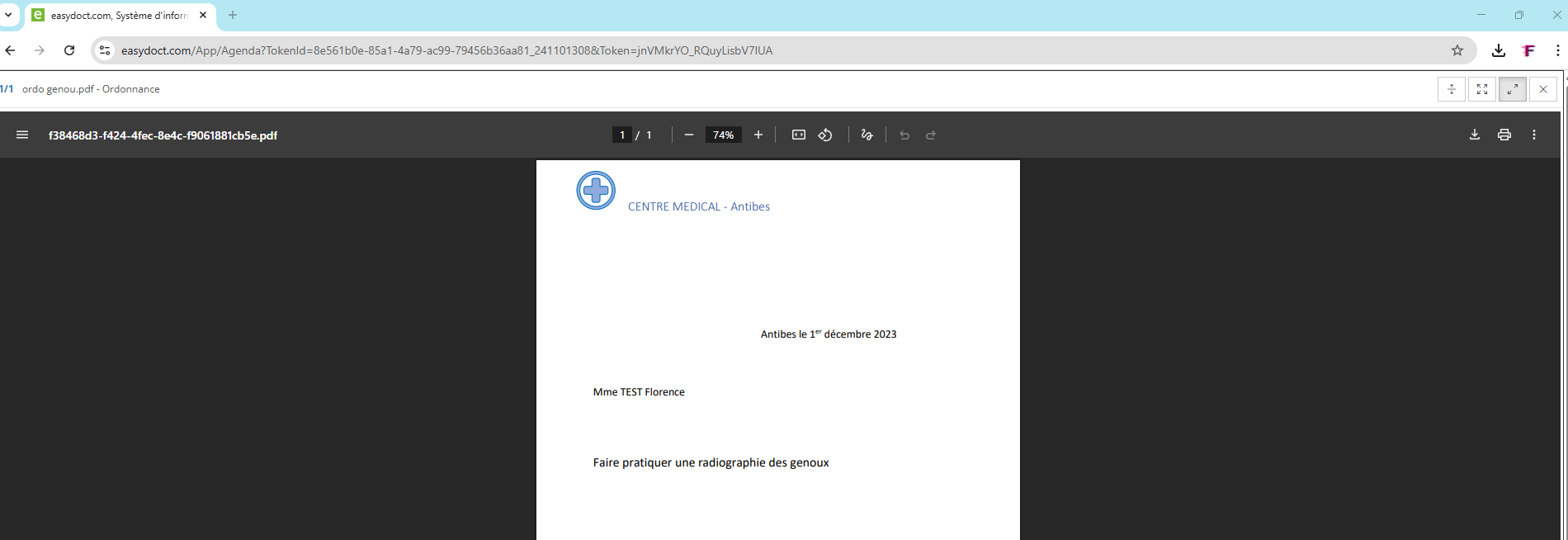 - Cliquez sur le pictogramme du document pour afficher l'ordonnance et/ou tout autre document permettant de vérifier le rdv