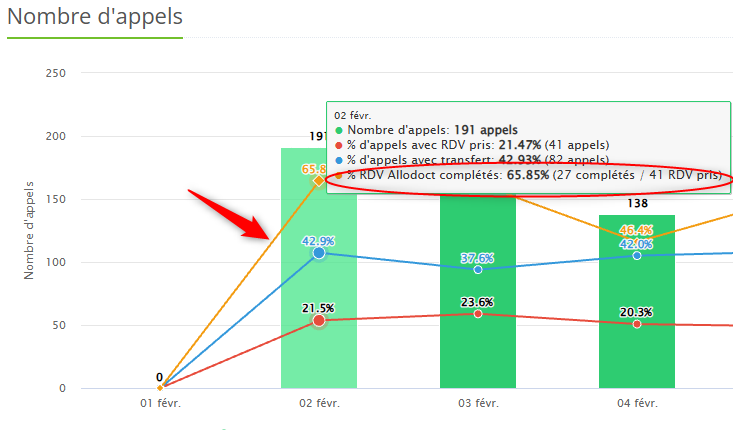 - La complétion est également visible sur le graphique "Nombre d'appels"