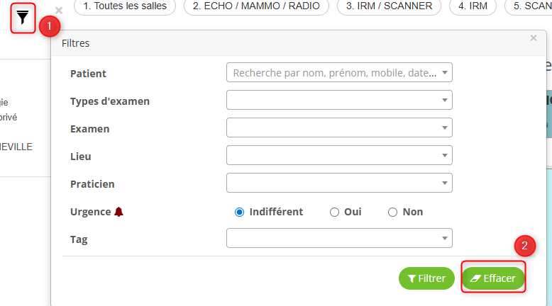 NB : Lorsque le filtre est activé l'entonnoir est vert, non activé il reste noir.