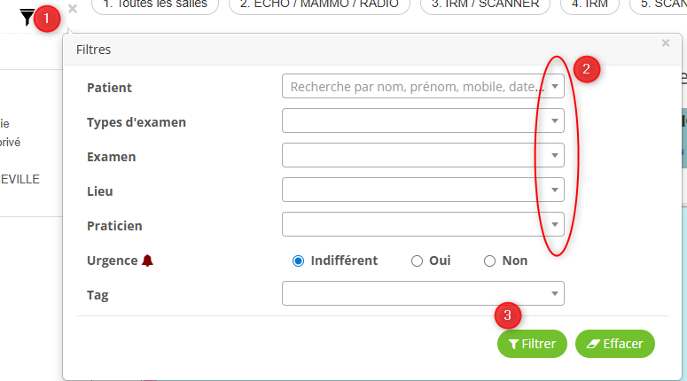 - Grâce aux menus déroulant, renseigner le(s) filtre(s) souhaité(s)