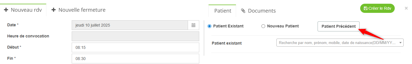 Alors le "patient précédent" correspondra au patient du dernier rendez-vous manipulé