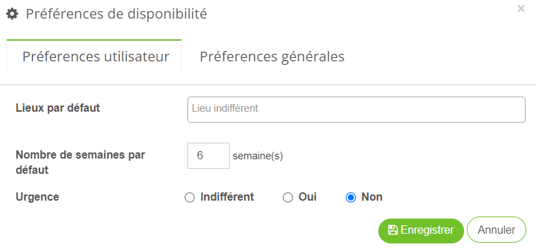 Comment l'utilisateur peut-il paramétrer ses préférences de recherche de disponibilités ?