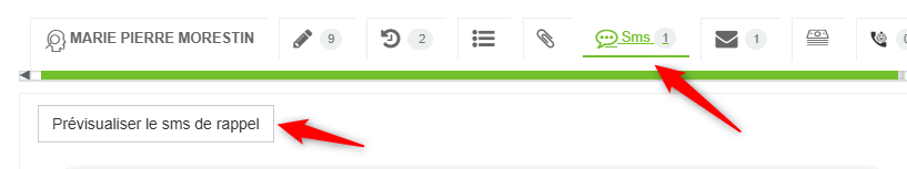 - Cliquez sur le bouton Prévisualiser le sms de rappel