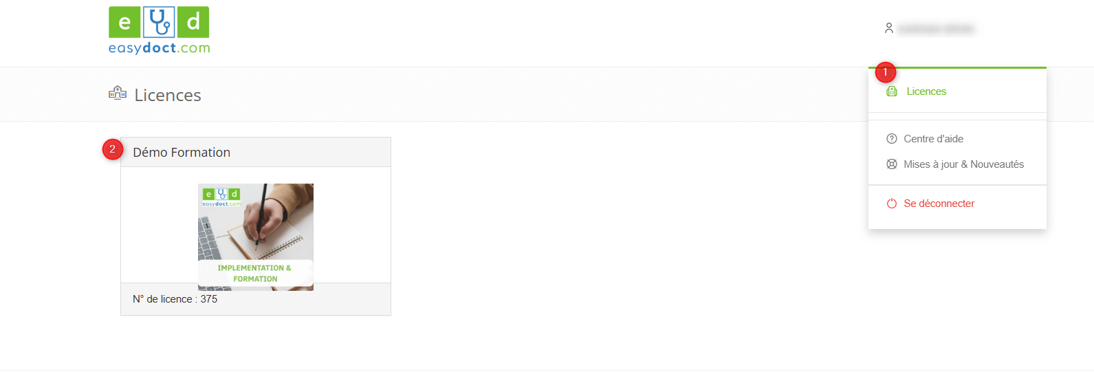 - Cliquez sur Licences puis sur la vignette de votre licence