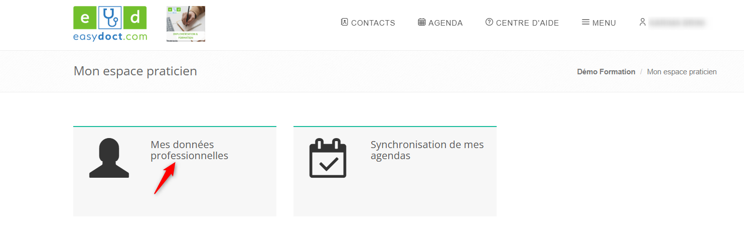 MENU > CONFIGURATION > MON ESPACE PRATICIEN