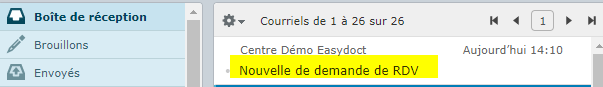 Définition : Il est possible de recevoir un email informant qu'une demande de rdv a été effectuée depuis le portail patient