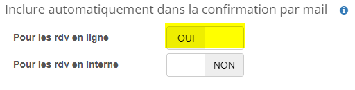- Sur la ligne "pour les rdv en ligne", basculez le bouton sur OUI