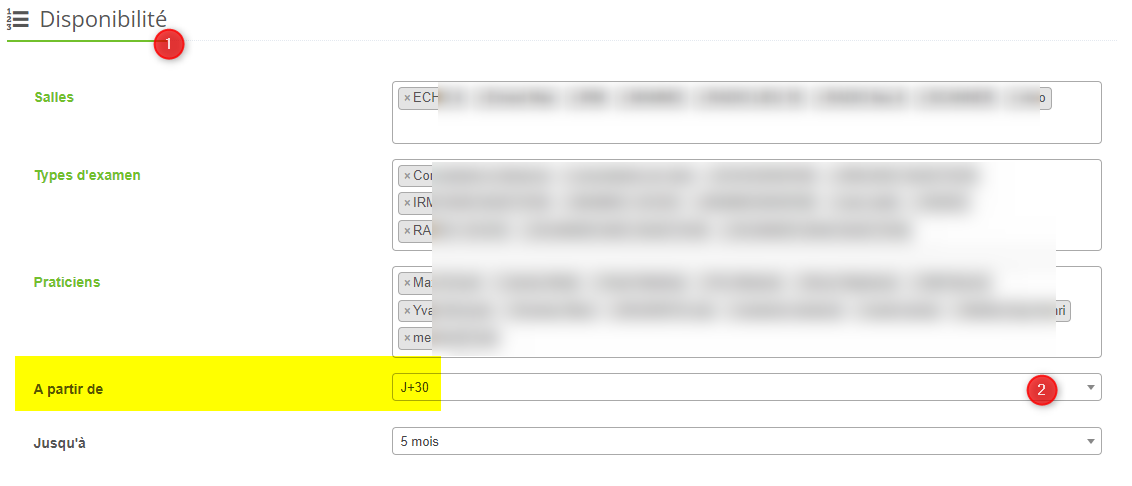 Définition : Cette fonctionnalité étendue à J+30 permettra de ne proposer des disponibilités aux patients qu'à partir d'un mois depuis le portail patient.