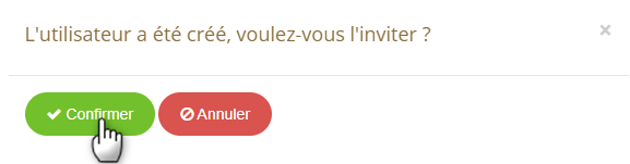 Il est possible d'inviter un nouvel utilisateur dés sa création. Pour cela cliquez sur confirmer dans la pop up qui s'affiche